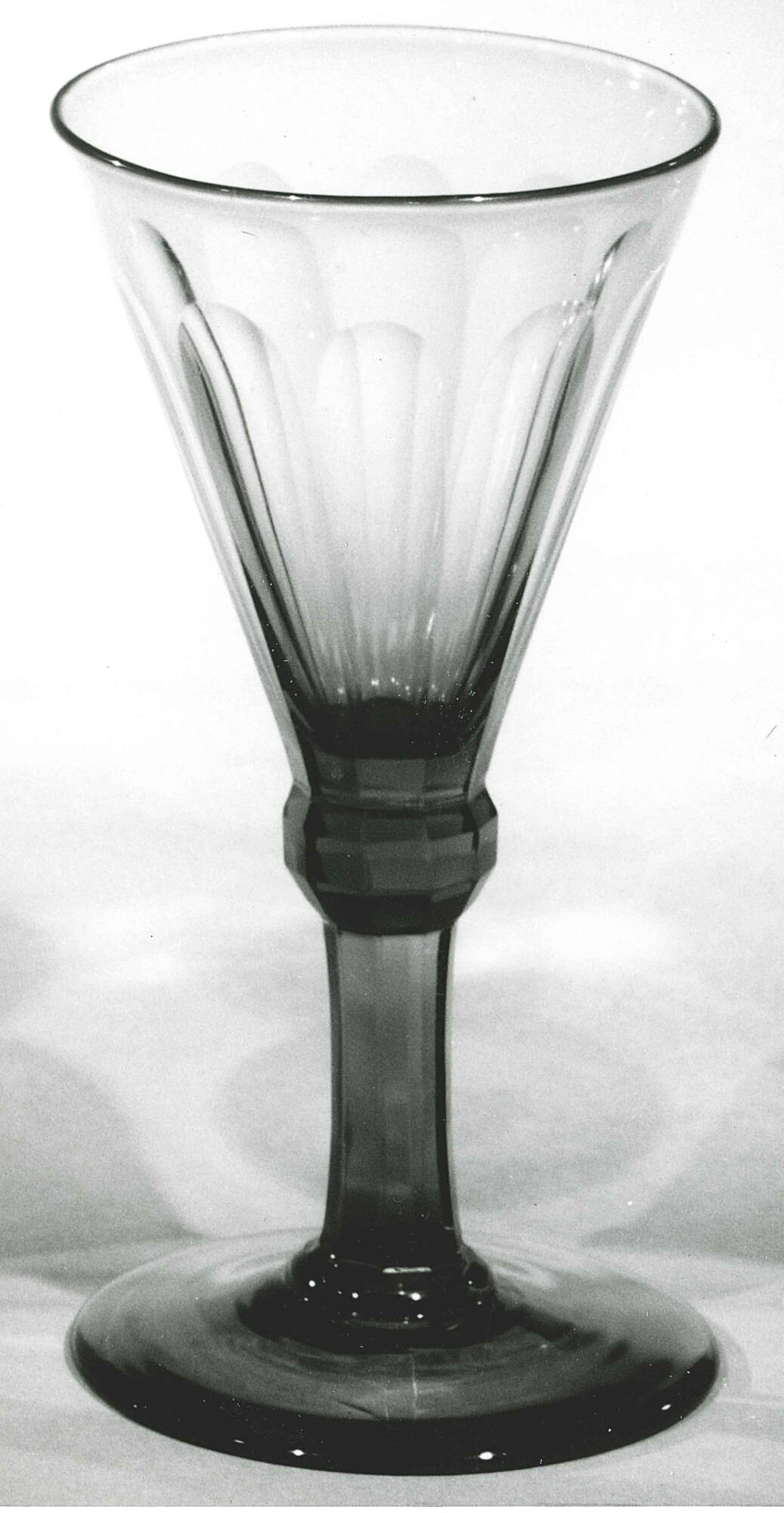 MediumGlass, free blown bowl with 10 panel cut facets extending from stem onto bowl.