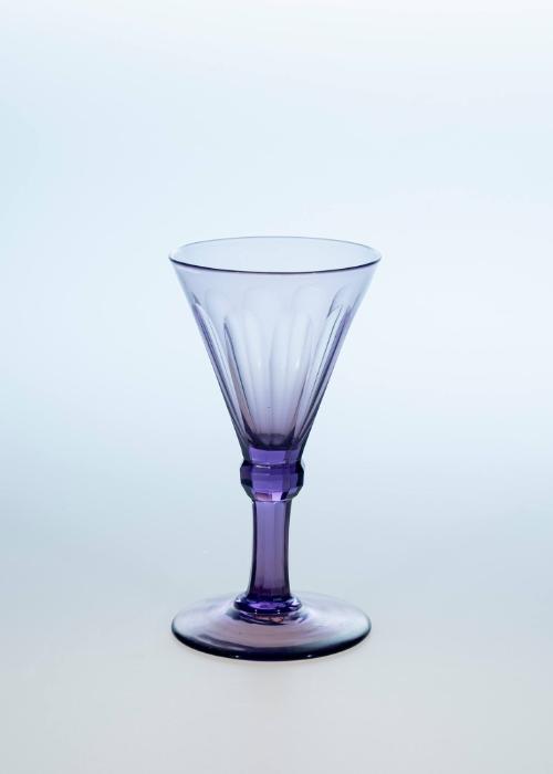 MediumGlass; free-blown bowl with ten panel cut facets extending from stem onto bowl.