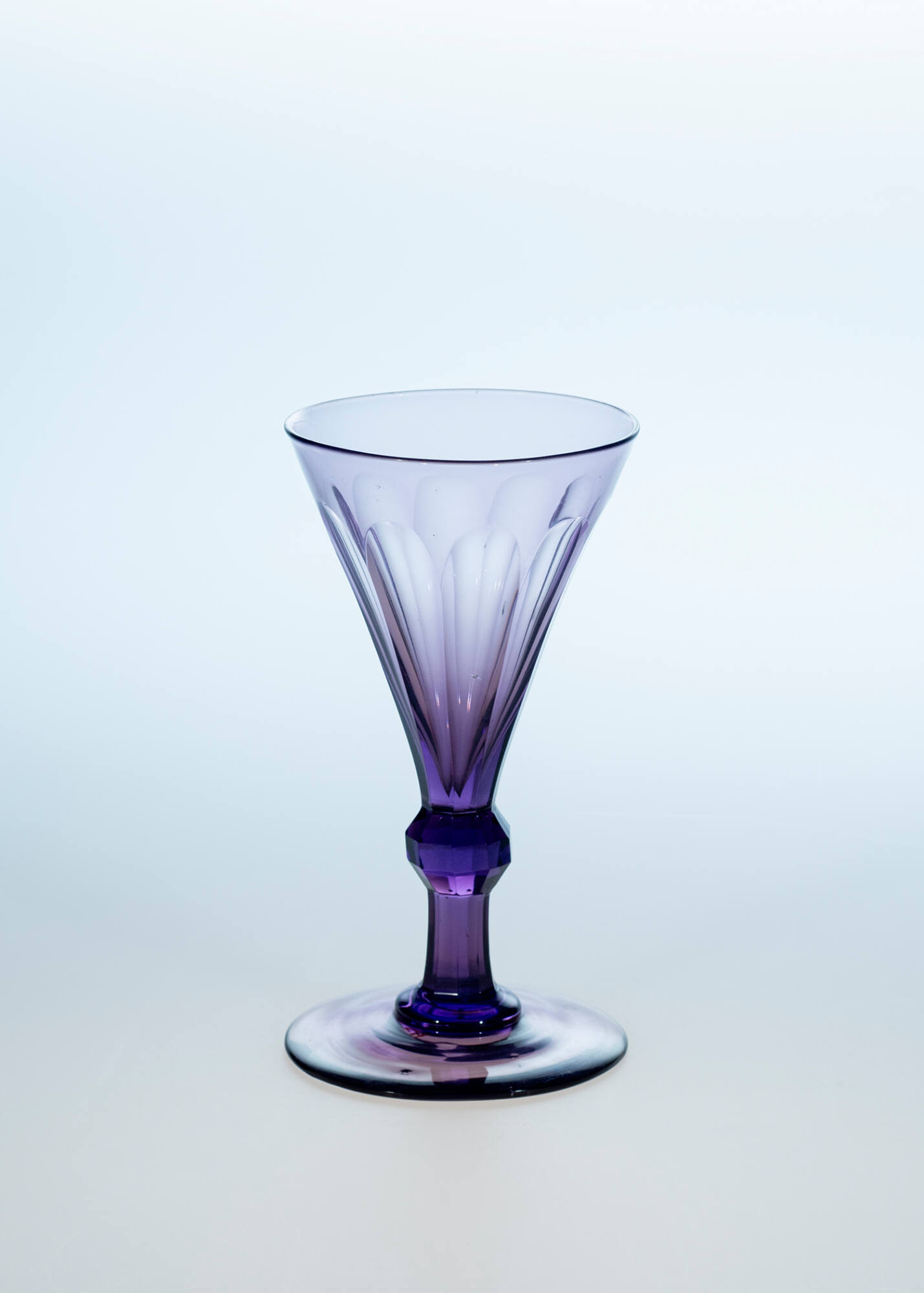 MediumGlass; free-blown bowl with ten panel cut facets extending from stem onto bowl.