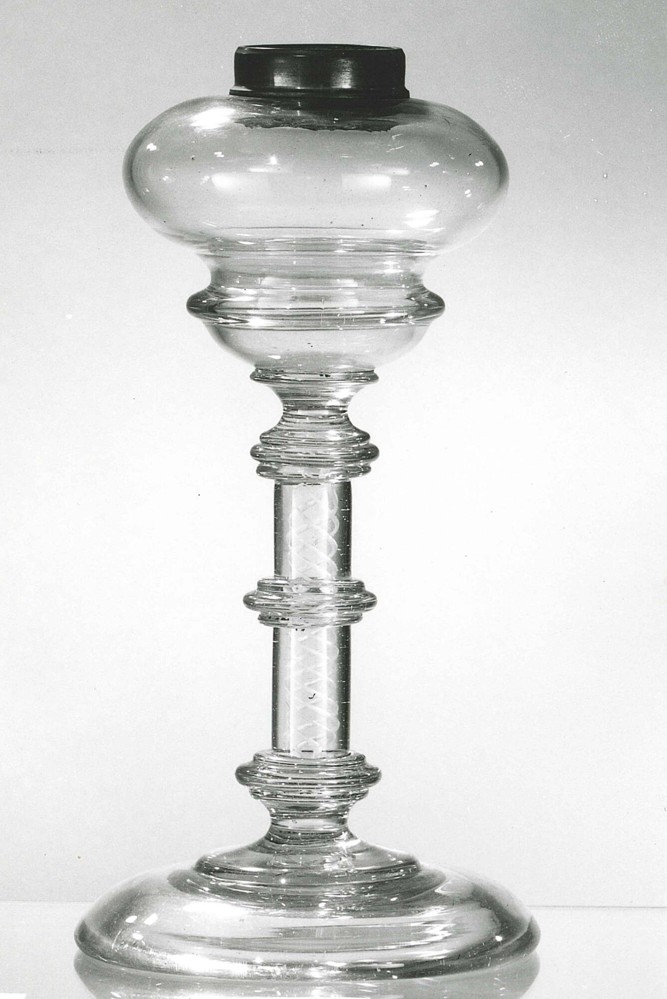 MediumGlass; blown with cotton twist in stem.