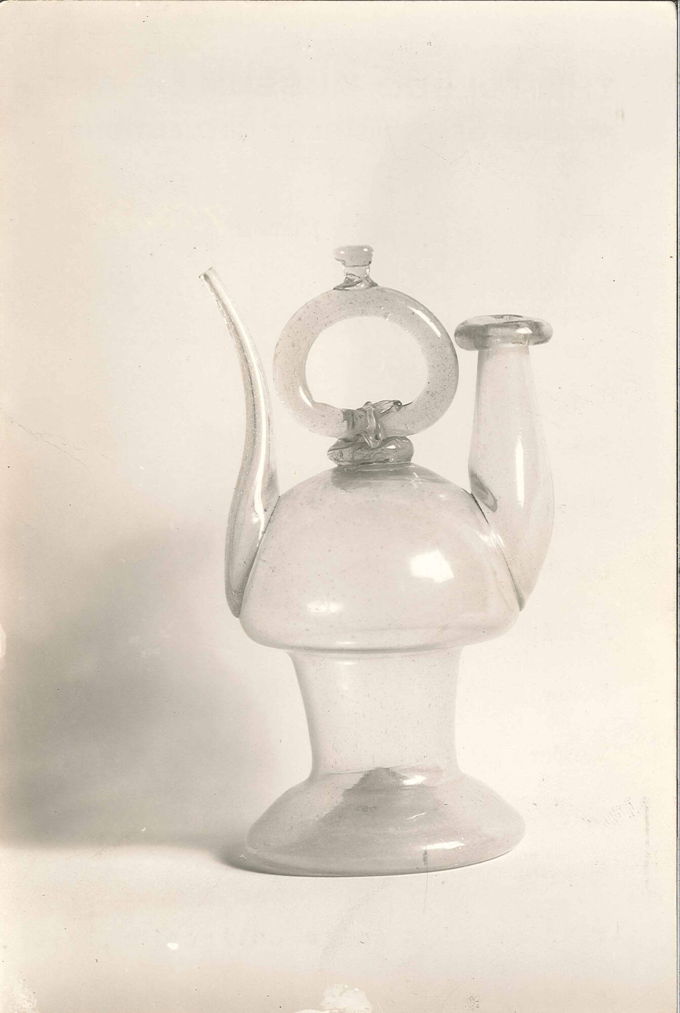 DescriptionNeck, beak, and a circular shaped handle, with knob at top.