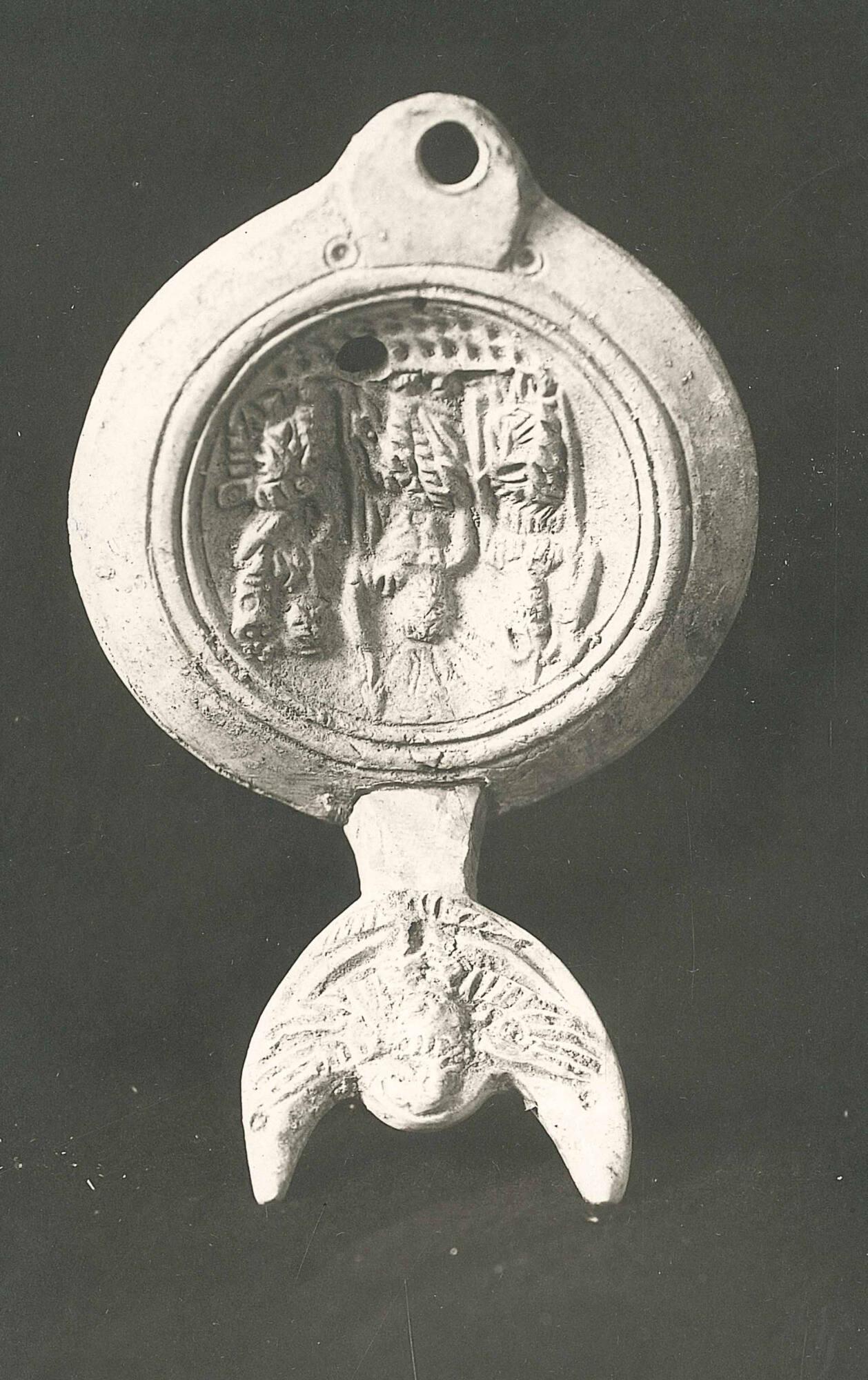 Comparative ReferencesLamp with Capitoline Triad in Antikensammlung Munich: https://commons.wikimedia.org/wiki/File:Staatliche_Antikensammlungen_M%C3%BCnchen_885.JPG Lamp with Capitoline Triad in Spurlock Museum at UIUC: https://commons.wikimedia.org/wiki/File:Lamp_depicting_Jupiter,_Juno,_and_Minerva,_Roman,_France,_1st_century_AD,_terracotta_-_Spurlock_Museum,_UIUC_-_DSC05769.jpgabout 420-550 CE