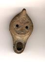 Label TextThis small clay lamp would have fit in the palm of a hand, providing a flickering light for a Roman household or a tomb. The central decoration features the Chi-Rho, a monogram formed by superimposing the first two letters of the Greek word for Christ (Chi and Rho). Following the Emperor Constantine's adoption of Christianity in the 4th century, symbols like this replaced pagan deities on everyday objects, signaling the owner's faith. Millions of such lamps were produced in North Africa and Italy, serving as both practical lighting and votive offerings in graves. This specific example was purchased by an American traveler in Rome in 1872, just after the city became the capital of unified Italy.Exhibition HistoryThe Dayton Art Institute, The Roman World: Religions and Everyday Life (featuring the Brooklyn Museum exhibition: Tree of Paradise: Jewish Mosaics from the Roman Empire), Sept. 21, 2007 - Jan. 6, 2008.