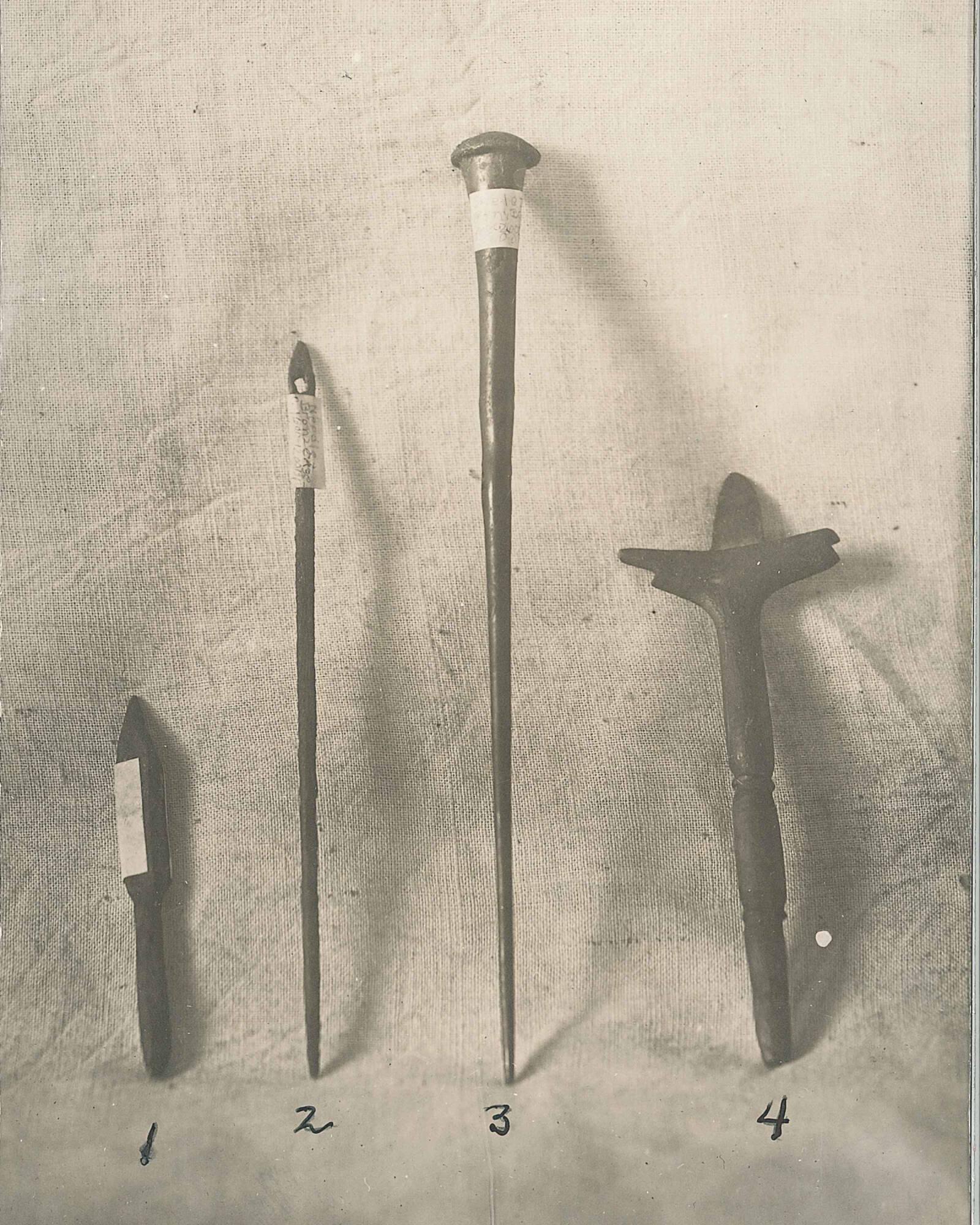 The bronze objects (1916.134–1916.149) reflect Cyprus’s early mastery of copper, a resource so central to the island that its Latin name, cuprum, derives from Cyprus itself. Bronze Age weapons, including a dagger (1916.149), attest to early casting traditions, while later Roman-period tools reveal long-term continuity in everyday practices. Tweezers (1916.147), cosmetic implements (1916.144–145), mirrors (1916.135–136), and a rare buckle (1916.146) point to routines of personal care across centuries.