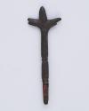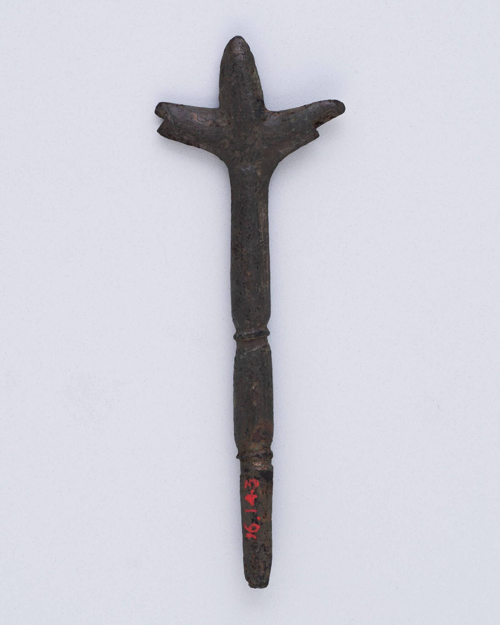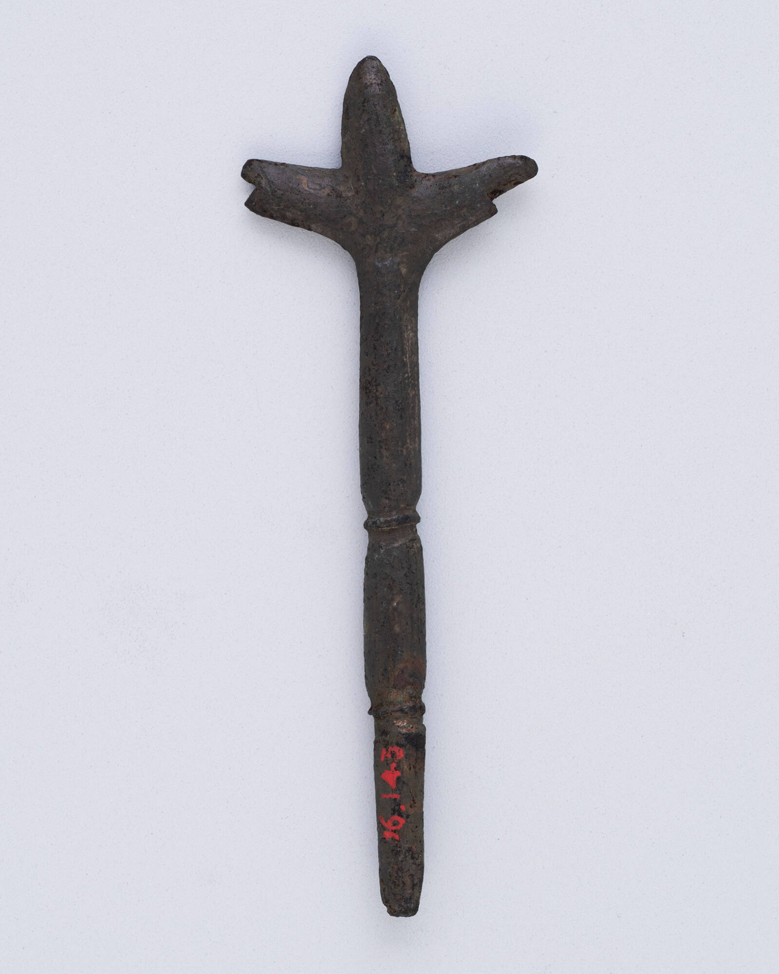 The bronze objects (1916.134–1916.149) reflect Cyprus’s early mastery of copper, a resource so central to the island that its Latin name, cuprum, derives from Cyprus itself. Bronze Age weapons, including a dagger (1916.149), attest to early casting traditions, while later Roman-period tools reveal long-term continuity in everyday practices. Tweezers (1916.147), cosmetic implements (1916.144–145), mirrors (1916.135–136), and a rare buckle (1916.146) point to routines of personal care across centuries.