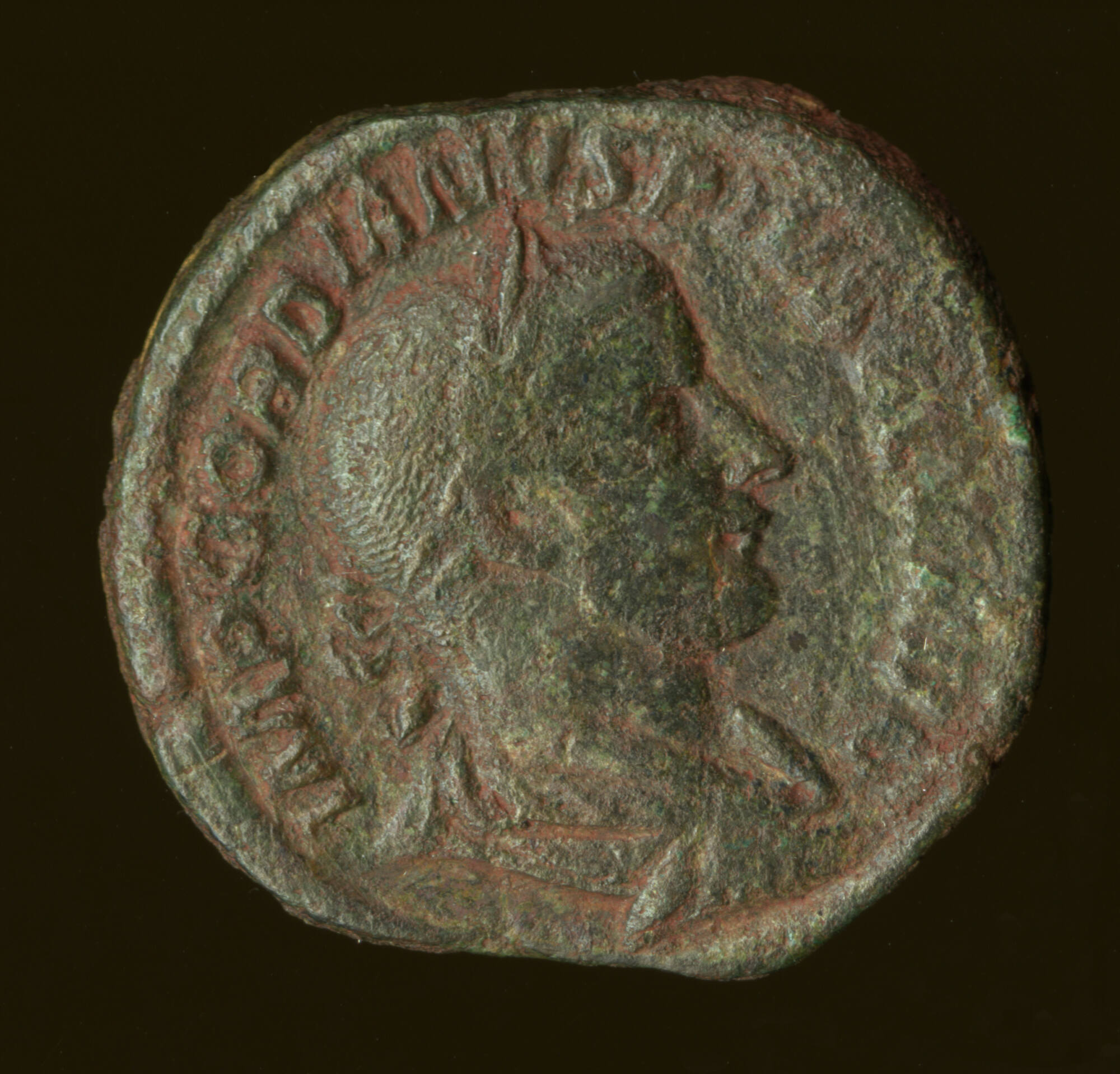IMP GORDIANVS PIVS FEL AVG: Bust of Gordian III, laureate, draped, cuirassed, right | Bust of Gordian III, radiate, draped, cuirassed, right