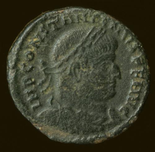 Obverse: Bust of Constantine facing left; laureate.