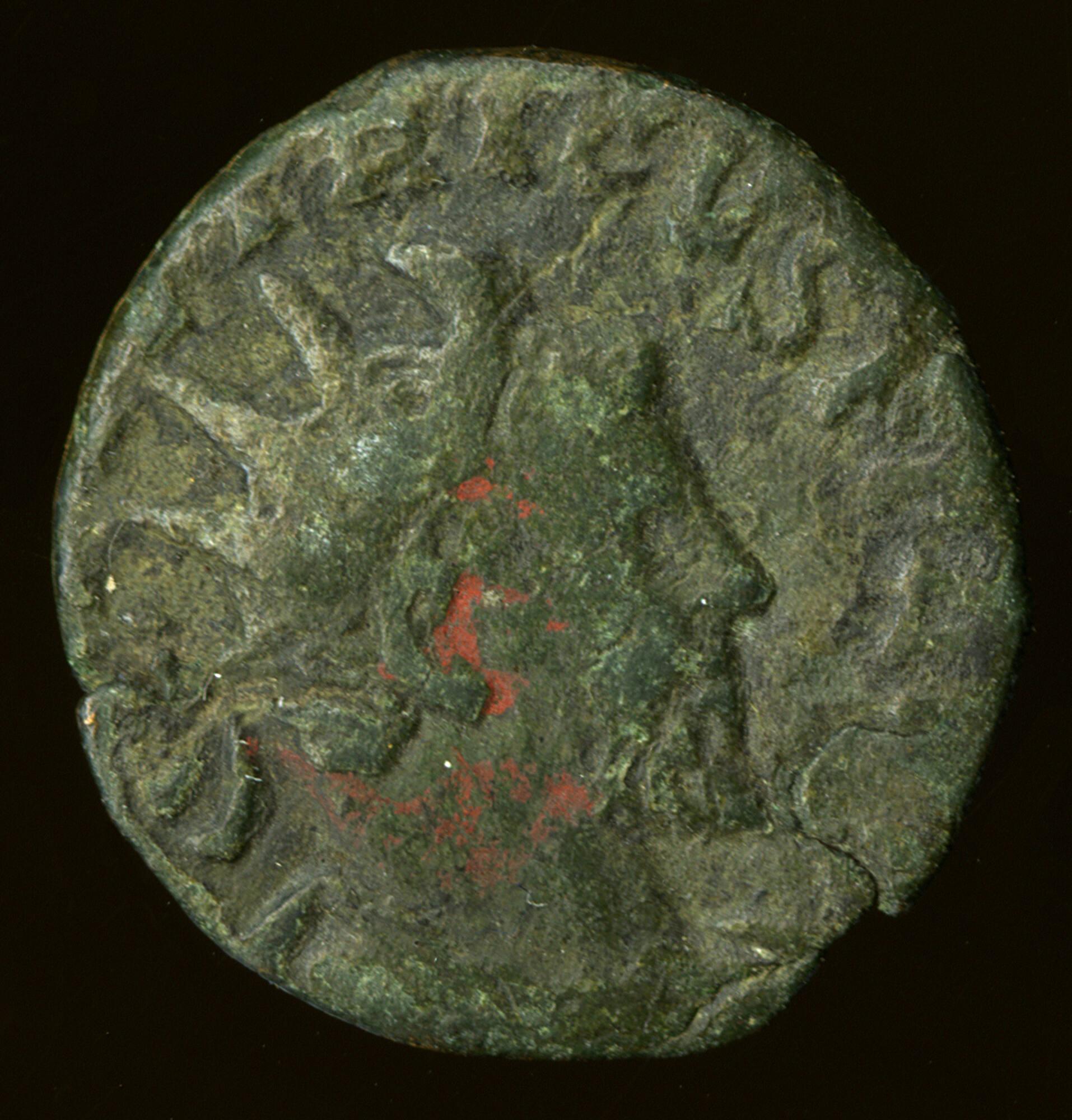 Reverse: God standing, head left, holding possibly sceptre and thunderbolt - Jupiter.