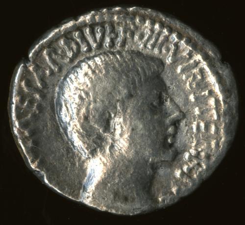 DescriptionObverse: Head of Octavius, facing right, bare. Reverse: Altar and temple of Caesar.