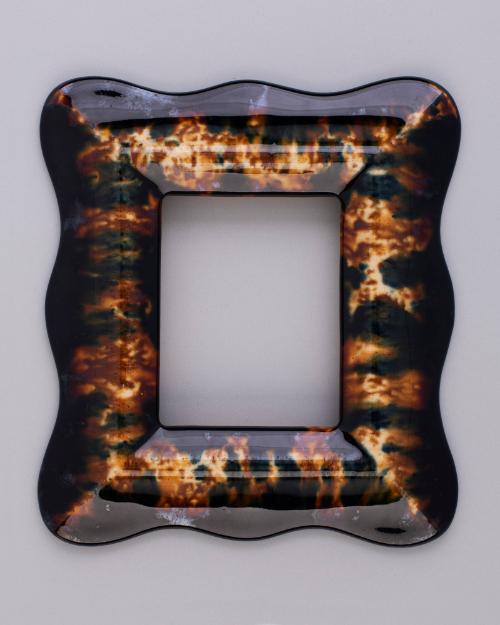 DescriptionFlint enamel glaze. Molded in rectangular shape with scalloped edge.
