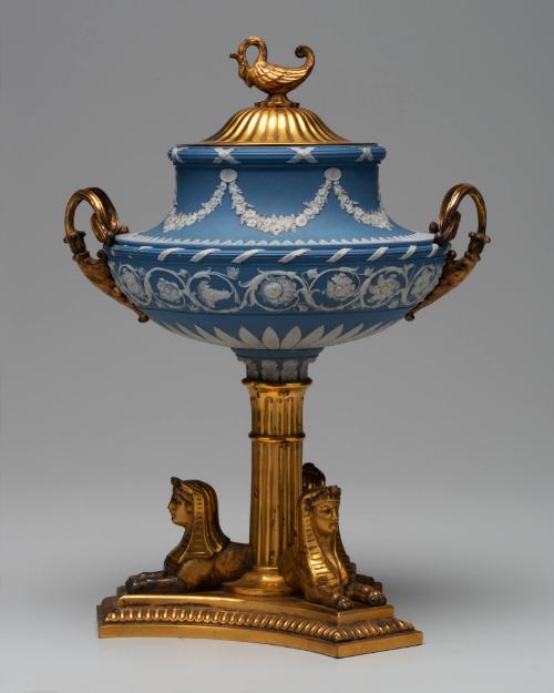 DescriptionBlue and white jasper ware with ormolu mountings.