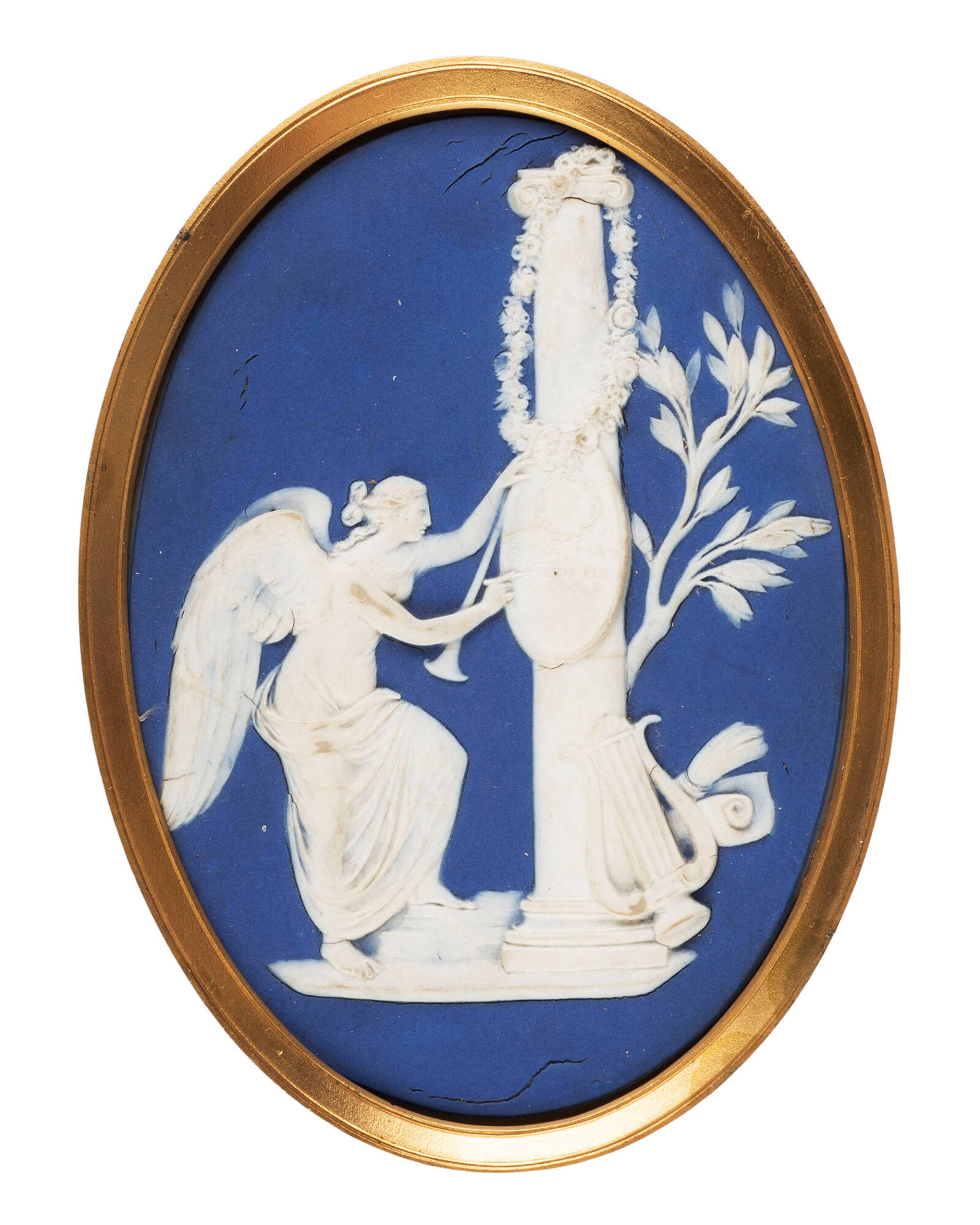 DescriptionBlue and white jasper. "Victory Writing on a Shield"