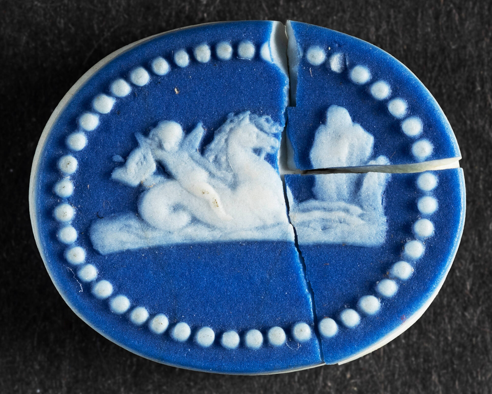 DescriptionBlue and white jasperware.