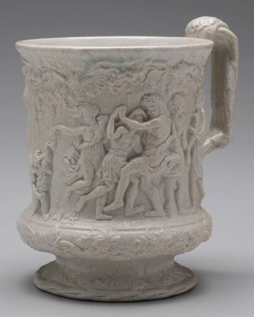 DescriptionWhite stoneware with Bacchanalian subject in relief.