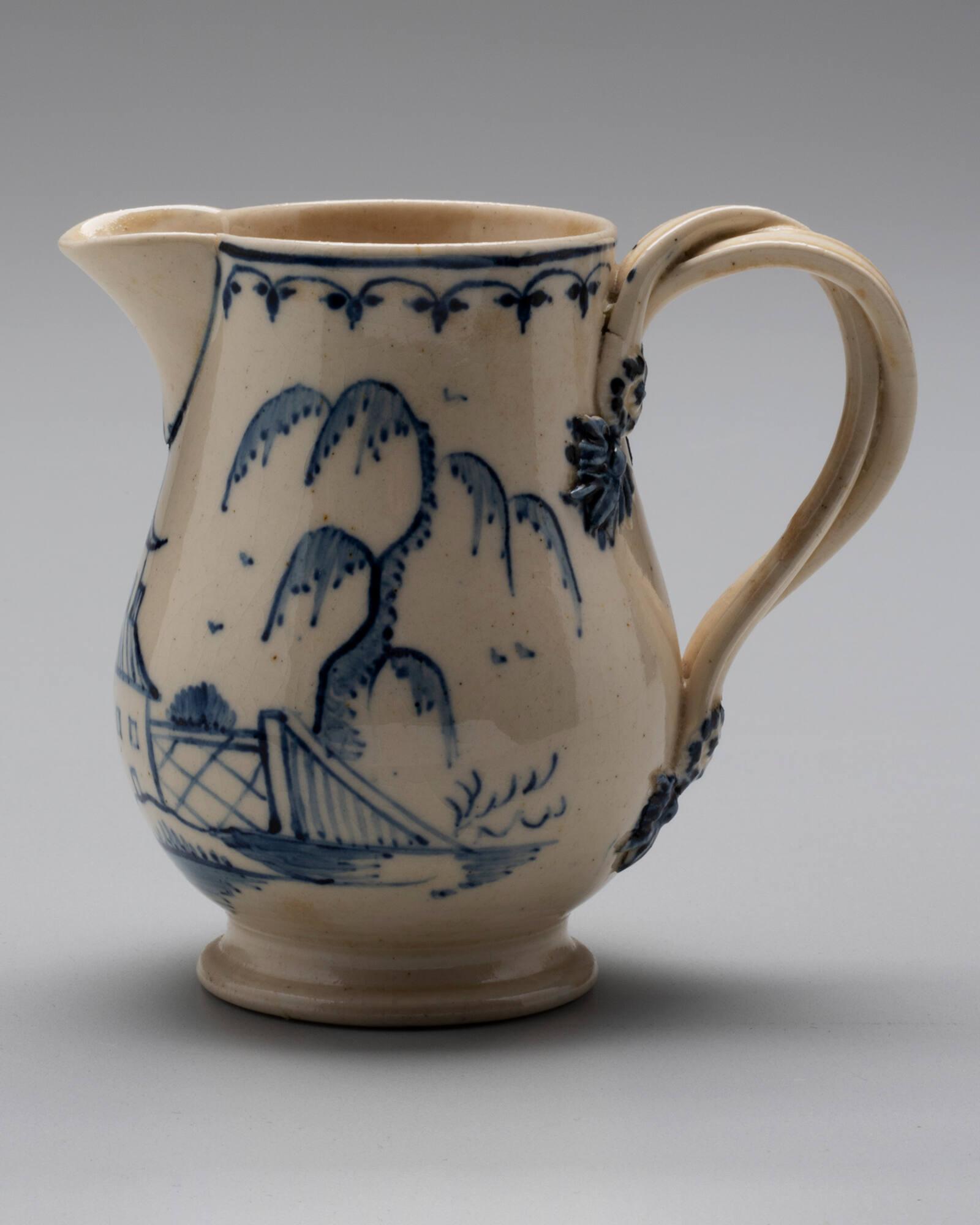 DescriptionEarthenware (creamware) with blue painted scenes.