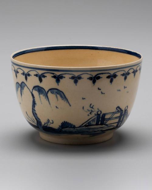 DescriptionEarthenware (creamware) with blue painted scenes.