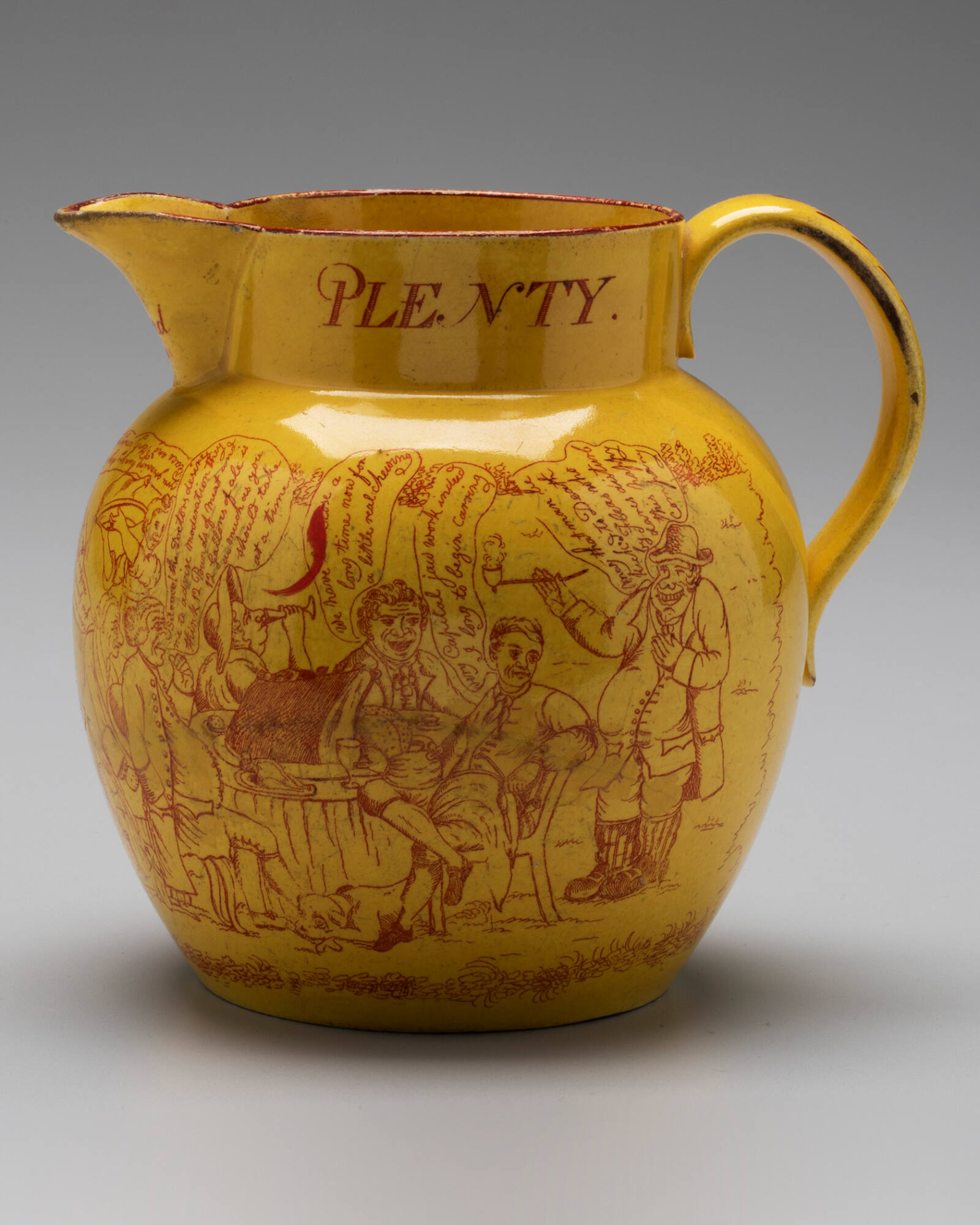 DescriptionEarthenware with canary glaze and red transfer