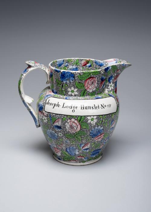 DescriptionEarthenware, creamware glaze with transfer and painted polychrome decoration.