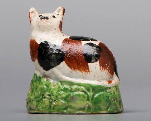 DescriptionMolded, cream-colored base with black and brown overglaze highlights.