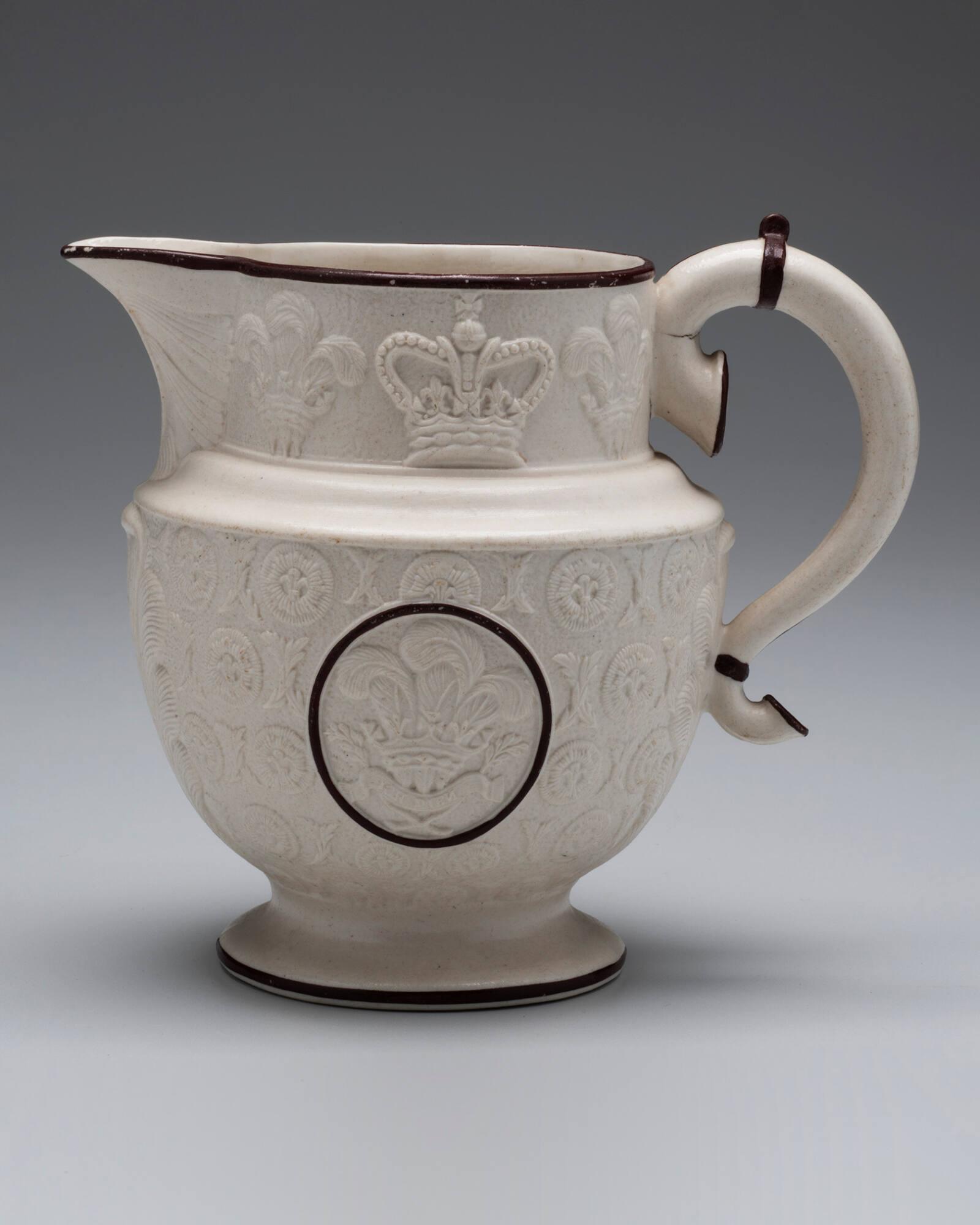 DescriptionMolded boyd with white smearglaze and accents in brown trim.