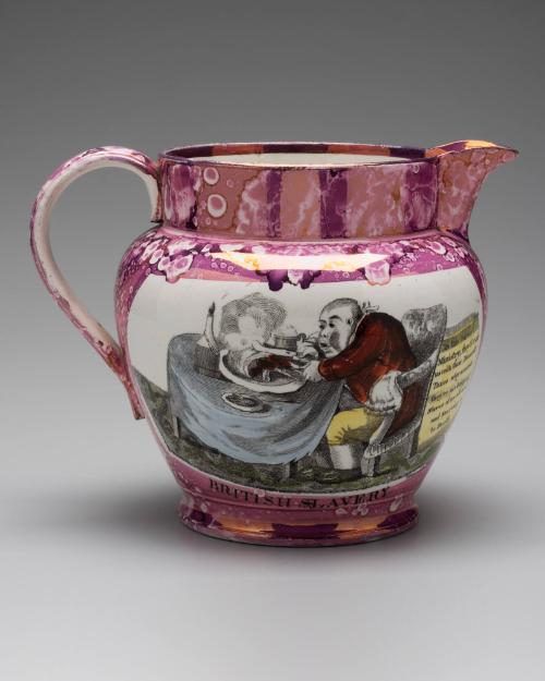 DescriptionPolychrome glaze and pink splash luster with white panels for transfers.