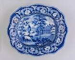 DescriptionBlue printed ware. Mt. Vernon in center. Flower border.