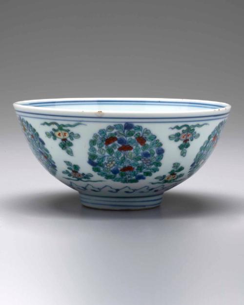 DescriptionDecorated with five circular flower panels in color and circular leaf scroll pattern in green inside