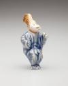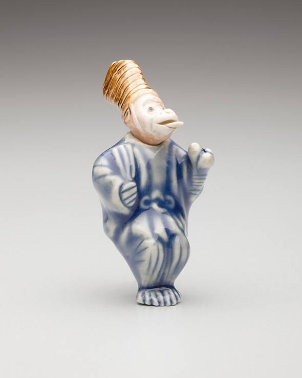 DescriptionMonkey Hiradoyaki with moveable head. Hirado ware; white porcelain with bisque, blue, and brown glazes.
