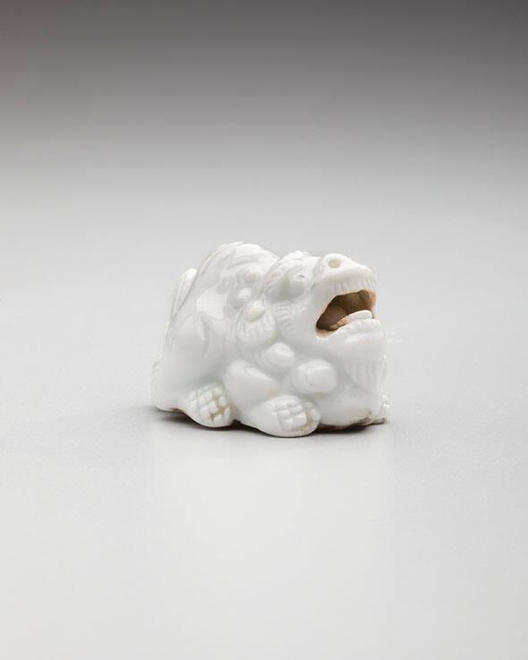 DescriptionSeated Shi Shi with ball in mouth. Hirado ware; glazed porcelain.