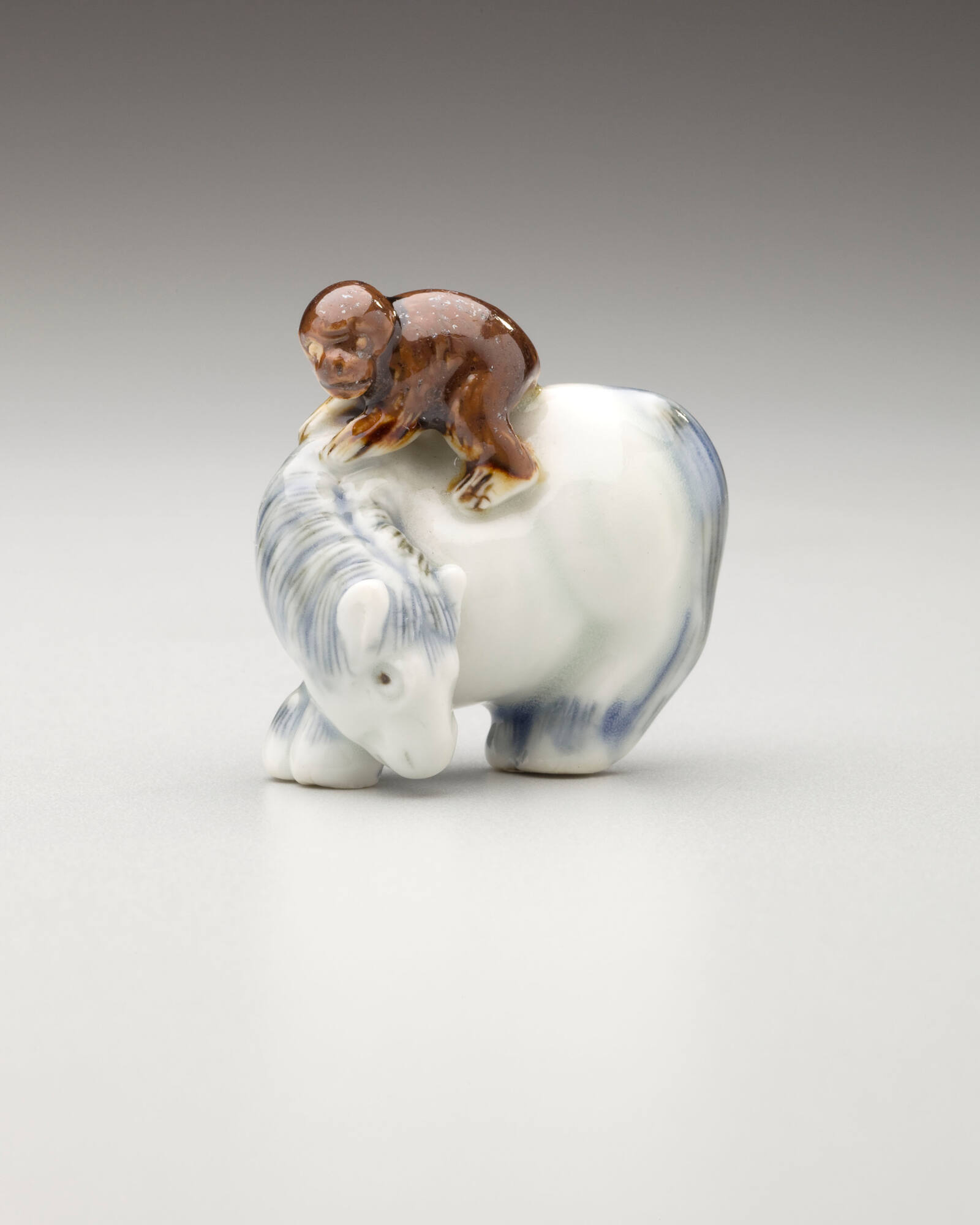 Exhibition HistoryToledo, Toledo Museum of Art, Life in Miniature: Ceramic Netsuke from the Silverman Collection, October 1, 2010 - February 27, 2011, repr. (col.) Cat. 16, p. 33 and Checklist, p. 60, (catalog title: Adornment in Clay: Ceramic Netsuke from the Richard R. Silverman Collection).mid-19th century