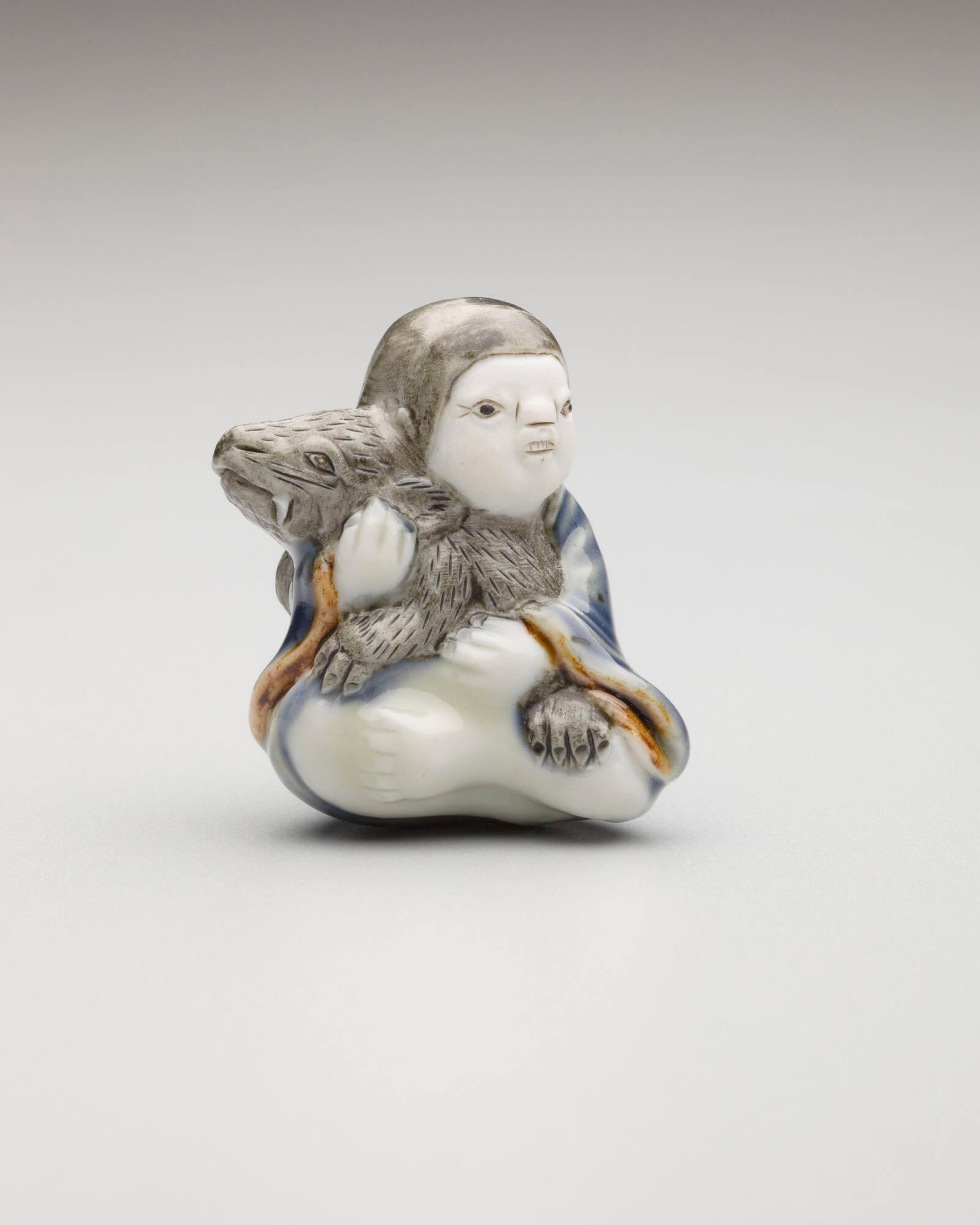 Exhibition HistoryToledo, Toledo Museum of Art, Life in Miniature: Ceramic Netsuke from the Silverman Collection, October 1, 2010 - February 27, 2011, repr. (col.) Checklist, p. 61, (catalog title: Adornment in Clay: Ceramic Netsuke from the Richard R. Silverman Collection).early 19th century