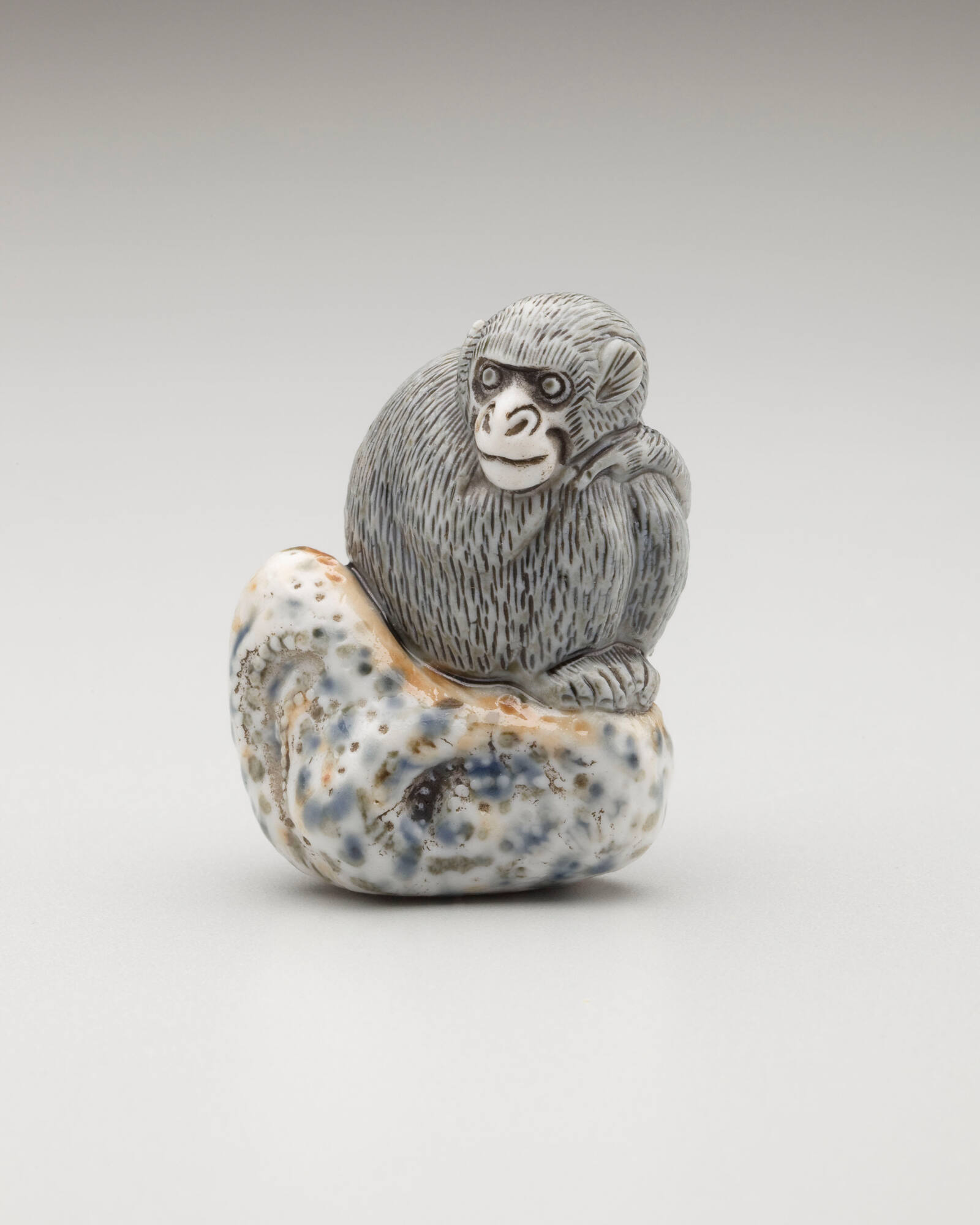 Netsuke: Monkey sitting on a rock