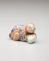DescriptionKarako lying on hobby horse. Hirado ware; porcelain with clear, bisque, blue, brown, and gray glazes.