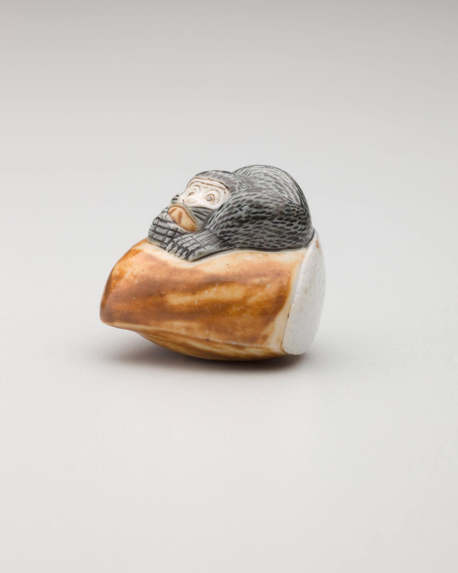 DescriptionMonkey on Chestnut. Hirado ware; porcelain with clear, brown, and gray glazes.