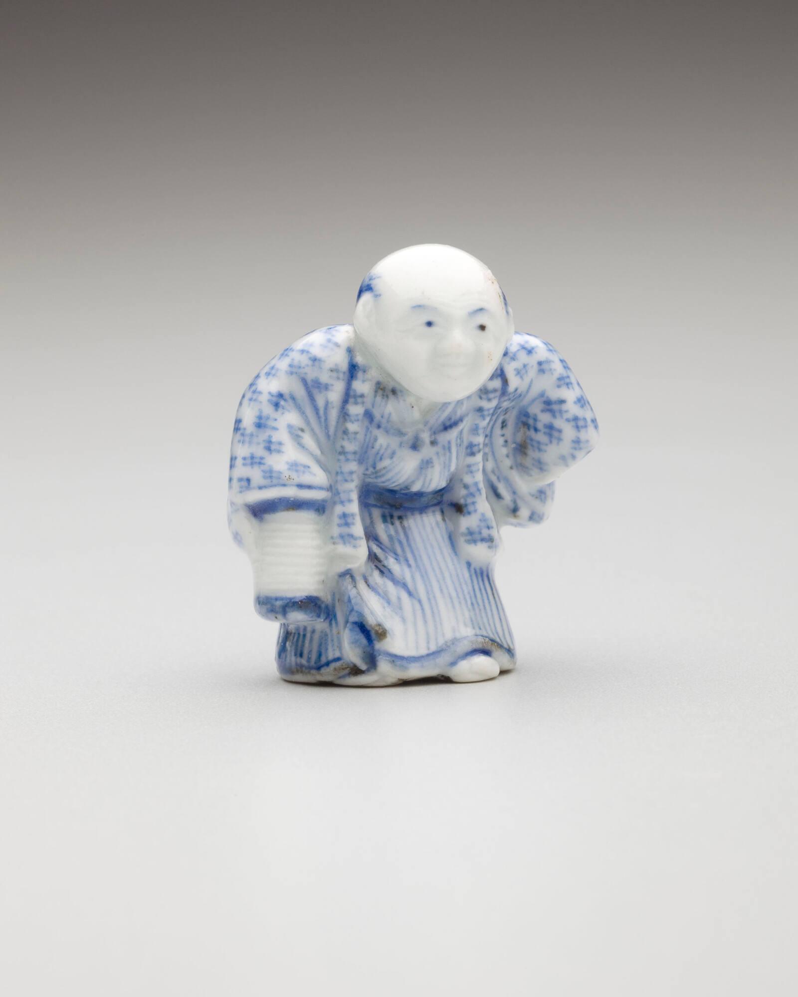 Exhibition HistoryToledo, Toledo Museum of Art, Life in Miniature: Ceramic Netsuke from the Silverman Collection, October 1, 2010 - February 27, 2011, repr. (col.) Checklist, p. 66, (catalog title: Adornment in Clay: Ceramic Netsuke from the Richard R. Silverman Collection).early 19th century