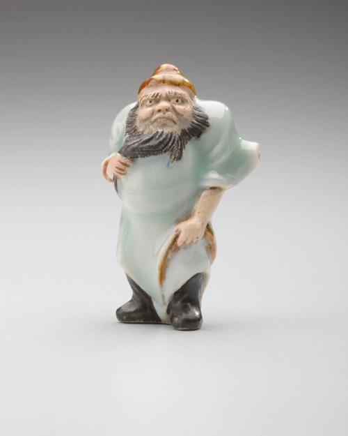DescriptionShoki holding beard. Hirado ware; porcelain with bisque, black, brown, and celadon glazes.
