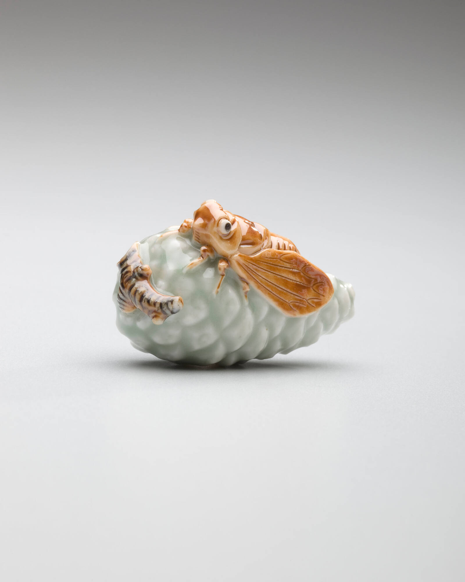 Exhibition HistoryToledo, Toledo Museum of Art, Life in Miniature: Ceramic Netsuke from the Silverman Collection, October 1, 2010 - February 27, 2011, repr. (col.) Checklist, p. 61, (catalog title: Adornment in Clay: Ceramic Netsuke from the Richard R. Silverman Collection).late 19th century