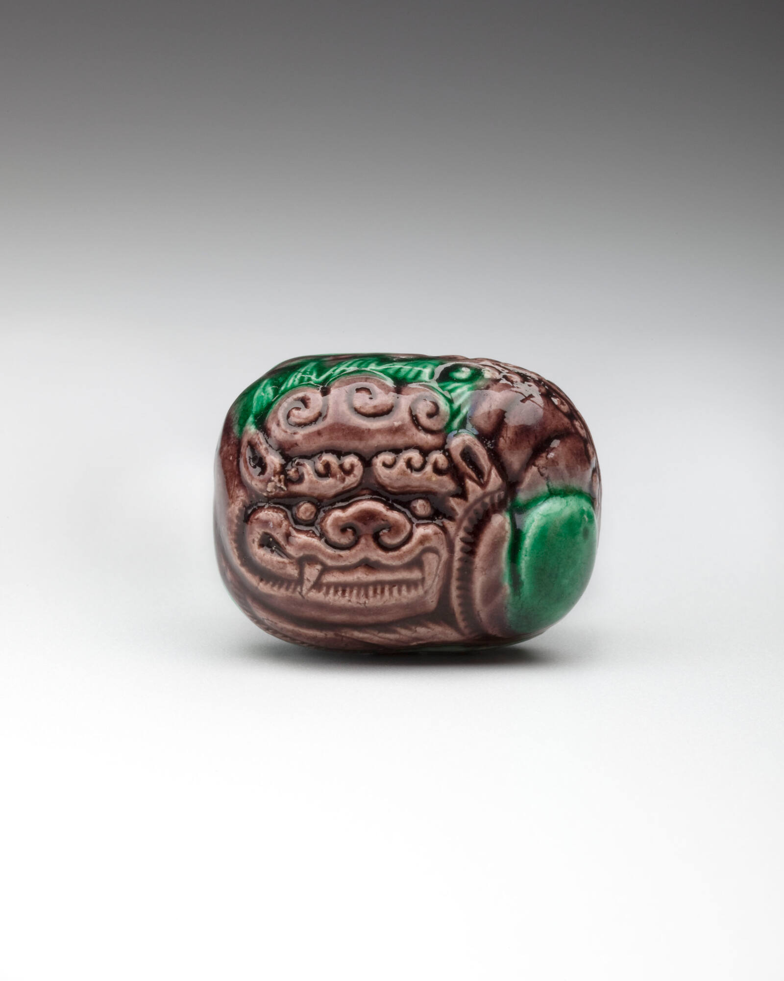 Exhibition HistoryToledo, Toledo Museum of Art, Life in Miniature: Ceramic Netsuke from the Silverman Collection, October 1, 2010 - February 27, 2011, repr. (col.) Checklist, p. 68 and (det.) p. 75, (catalog title: Adornment in Clay: Ceramic Netsuke from the Richard R. Silverman Collection).late 19th century