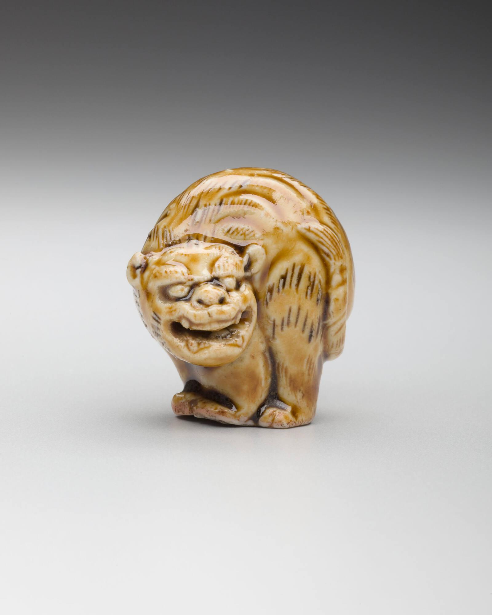 DescriptionCrouching tiger. Hirado ware; porcelain with brown glaze.
