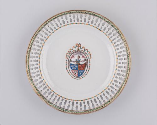 DescriptionGordon arms. Motto: Dum Sisto Vigilo. Pierced work inside blue border.