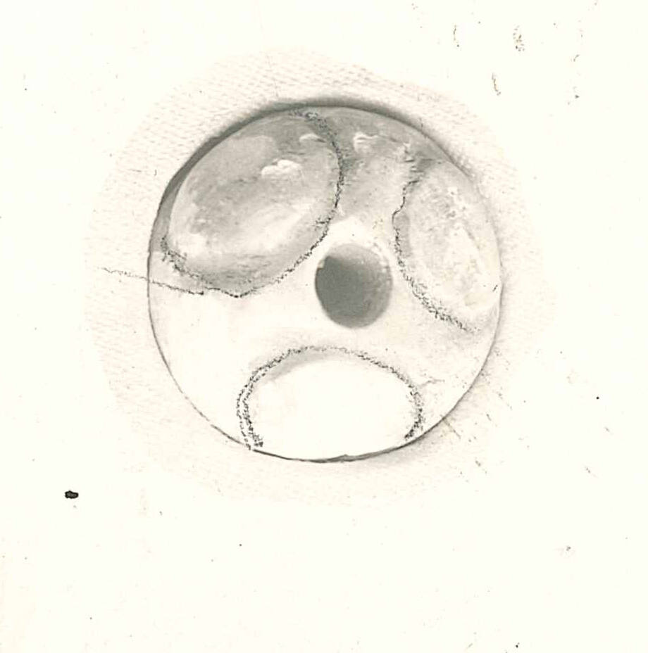 DescriptionButton with hole through center; triad disk pattern.
