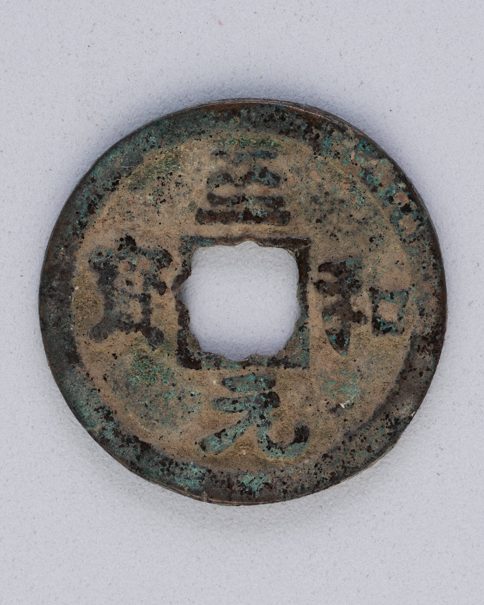 DescriptionObv: Chih Ho Yüan Pao (original coin of the Chih Ho Period), reading from top to right, bottom, left. Rev: plain.