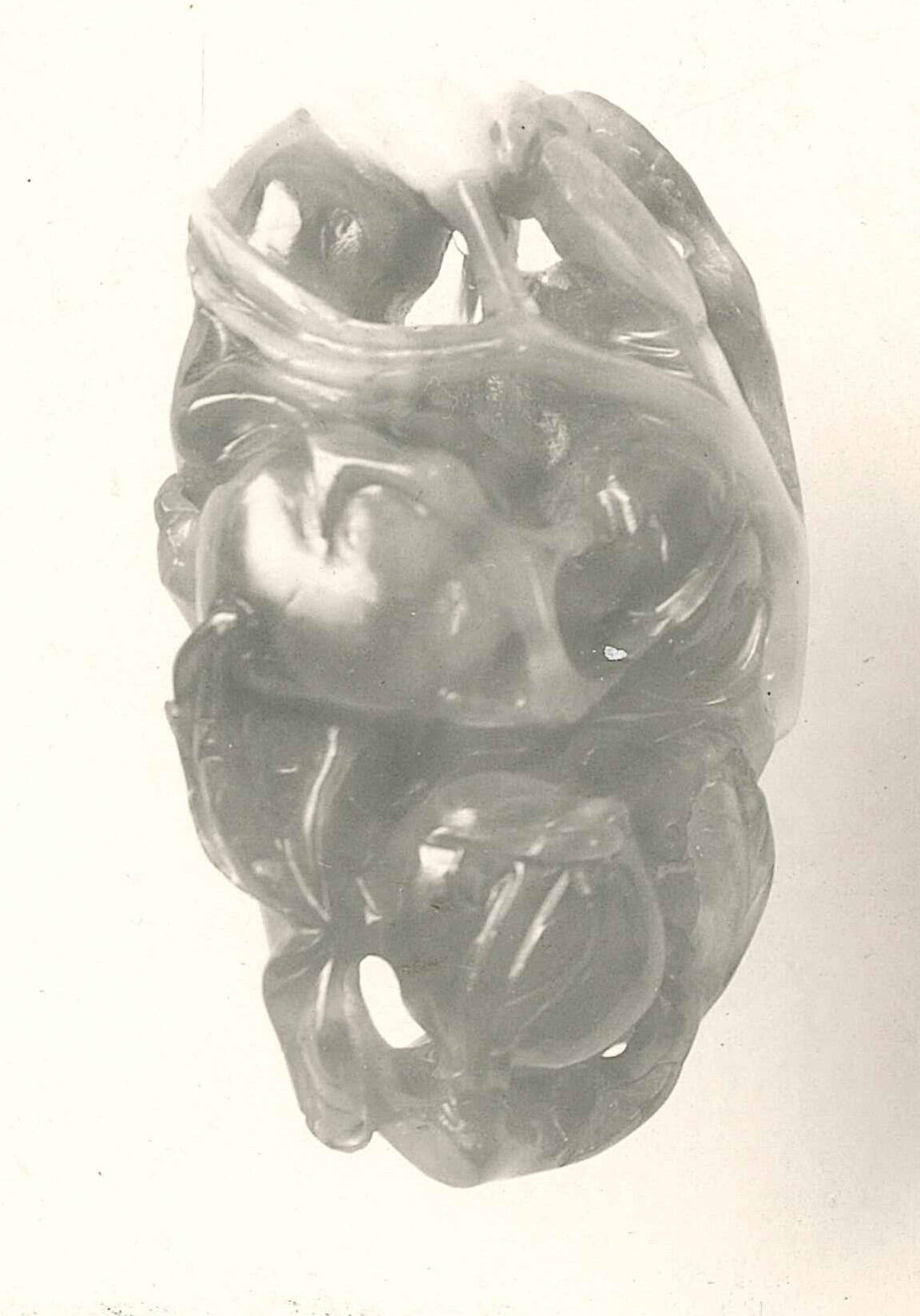 DescriptionRed and white agate. Carved in peach and bird motif.