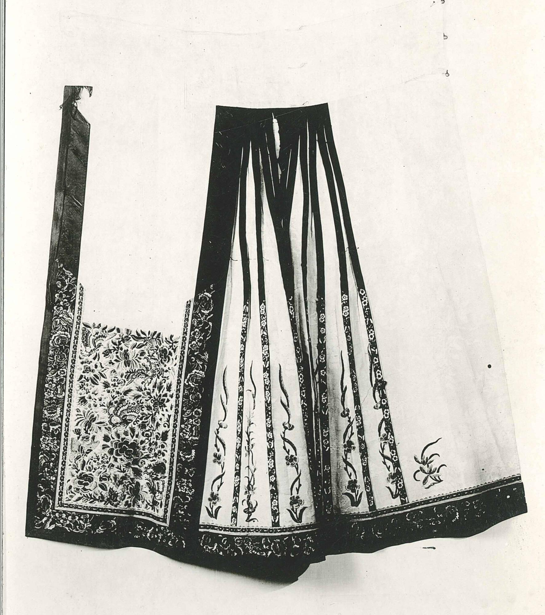 DescriptionEmbroidered in blue on a buff colored summer brocade.
