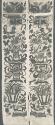 DescriptionFlowers in urns, musical instruments, and a box of books embroidered in color on a blue brocaded summer silk.