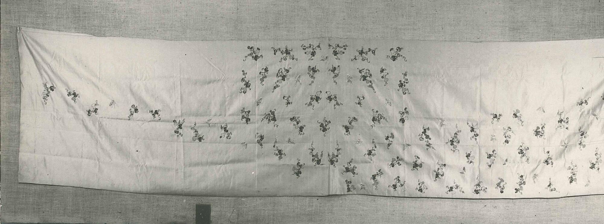DescriptionSpread with sprays of flowers and butterflies in color on a salmon ground.