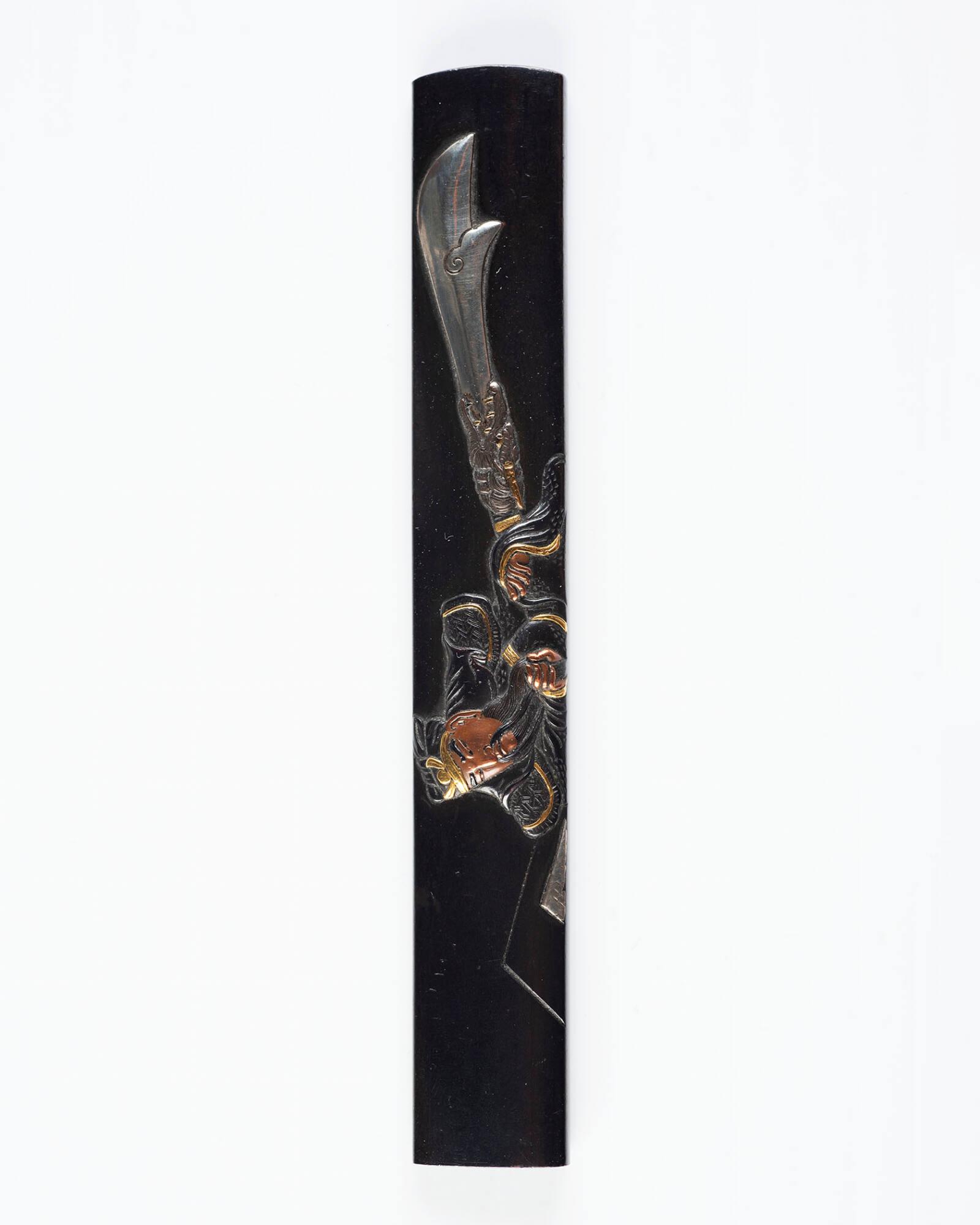 Kozuka: (front) Warrior dressed like a Chinese general, with a large sword