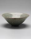 Label TextInlaid celadon ware, the outstanding achievement of the Goryeo potters, is almost exclusive to the Koreans. To produce the inlays, an artisan etched the design into the dried clay form and then filled in the incised lines with black or white slip (a liquid clay). The vessel was then glazed and fired in a kiln. On the top bowl, white and black inlays form medallions with two cranes; the bottom bowl features a traditional all-over motif known as the “thousand crane” pattern.Koryo Dynasty (918-1392)