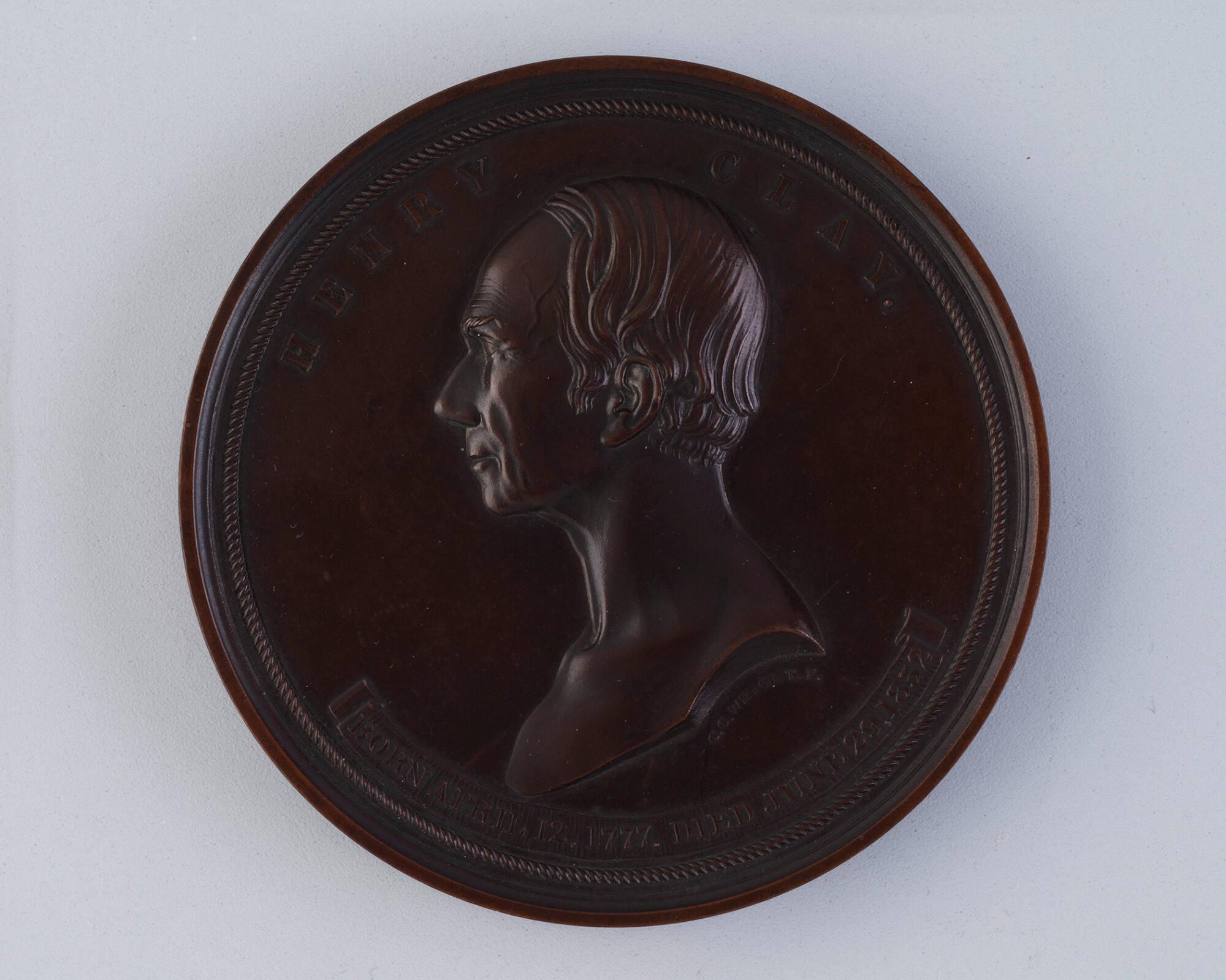 (Reverse) Hand and arm resting on a document inscribed "American System." Rock supporting sheet is inscribed "Constitutions."