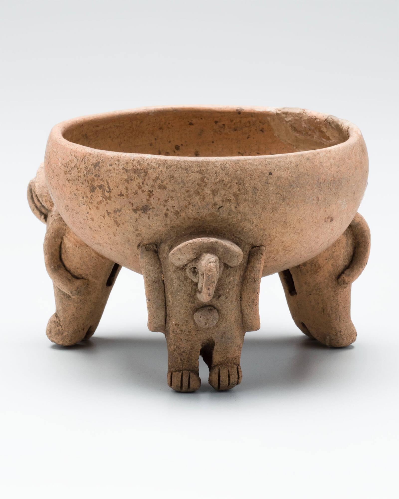 DescriptionUnglazed, hollow legs with loose pellets, grotesque figures.